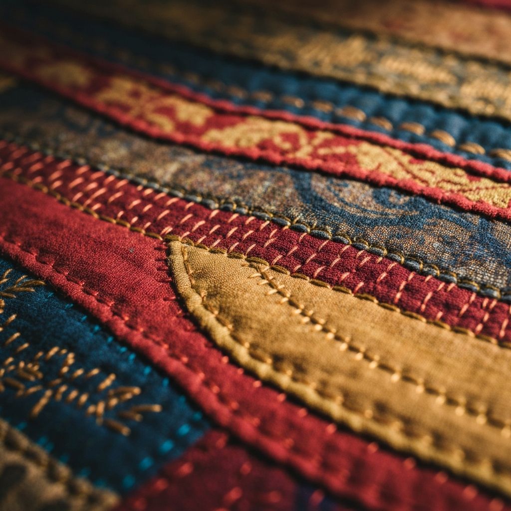 Patchwork, dikiş ve katmanlı kumaş yüzeyler aracılığıyla hafıza, dönüşüm ve süreklilik kavramlarını araştırırım.